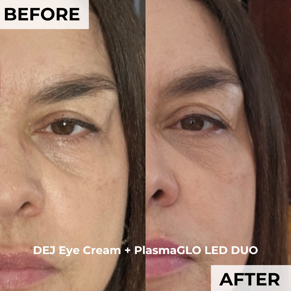 The PlasmaGLO Duo uses specific wavelengths of red (630±5nm) and near-infrared (830±5nm) light to improve the appearance of the eye area through controlled phototherapy.