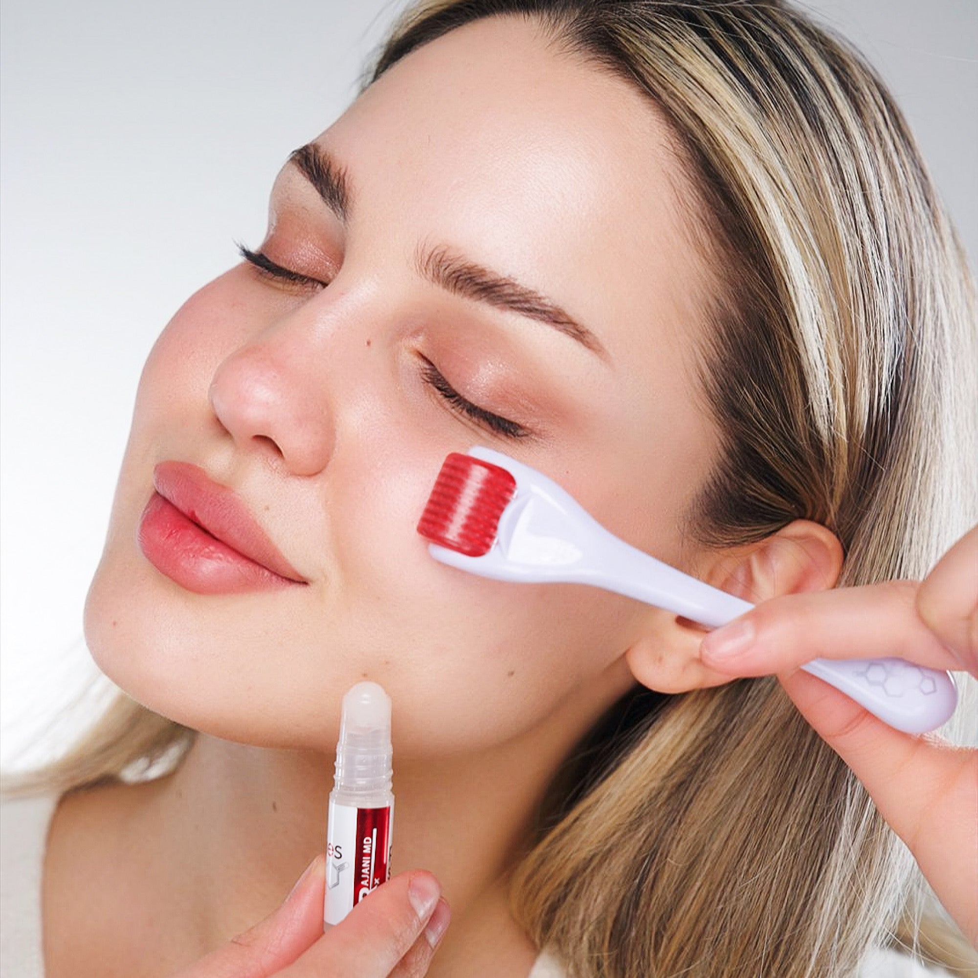 Microneedling is a proven cosmetic procedure that creates microscopic channels in the skin using tiny needles. The PlasmaSomes system uses a precise 0.25mm medical-grade stainless steel dermaroller that enhances product absorption by 74% while supporting your skin's natural barrier function.
