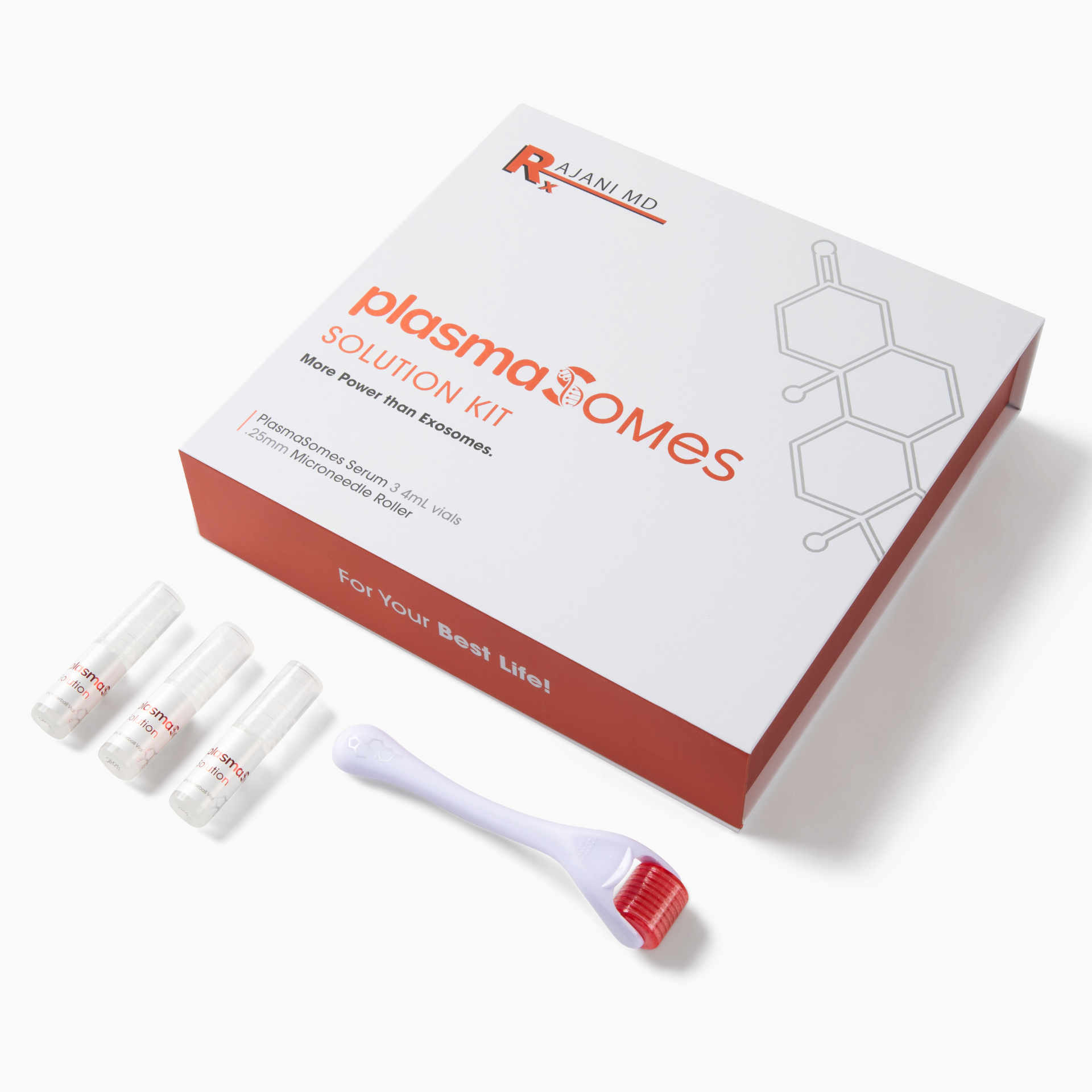 After years of research and engineering by world-reknowned scientist, Dr. Rajani proudly presents PlasmaSomes - a revolutionary skin cell solution system that combines advanced MOCRA certified nanoparticle technology signals, Tranexamic Acid and Specialized Hyaluronic Acid, with professional micro-needling to deliver real results. This first-of-its-kind alternative to exosomes is scientifically proven to remind your skin to act younger. To reduce wrinkles, tighten skin, and improve clarity - all WITHOUT USING human-derived materials traditionally found in exosomes and growth factors. In fact its Vegan!!